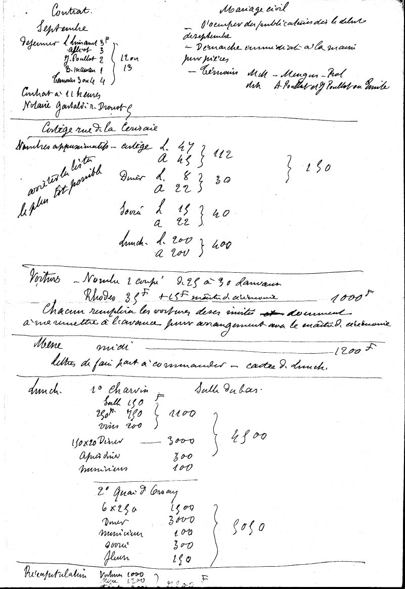 Les fiançailles sont officialisées le jour de Noël 1913. A partir de ce moment, les préparatifs commencent : listes des pièces administratives et religieuses nécessaires à la célébration du mariage, désignation des témoins, planning des démarches et liste de tous les détails d’organisation concernant le jour du mariage… . Tous ces documents ont été précieusement conservés par Maurice, par exemple ces notes (document de gauche ci-dessous) jetées sur papier par Marie Alliot. On pense alors que le mariage pourra être célébré fin octobre 1914. C’était compter sans la guerre dont personne ne soupçonnait encore qu’elle serait la conséquence, si proche et si dramatique, des événements qui se nouaient au-delà des frontières. Le mariage n’aura pas lieu à la date prévue.