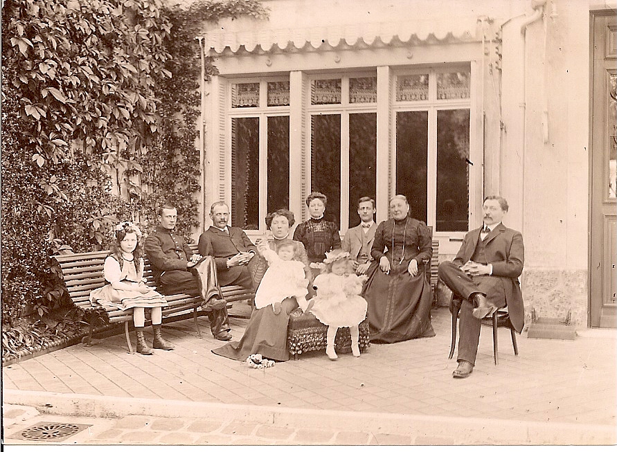 Laon : La famille Bertrand avant la guerre (M. Bertrand à droite, Pierre, 3e à partie de la droite, Mme Bertrand, 4e à p. de la gauche