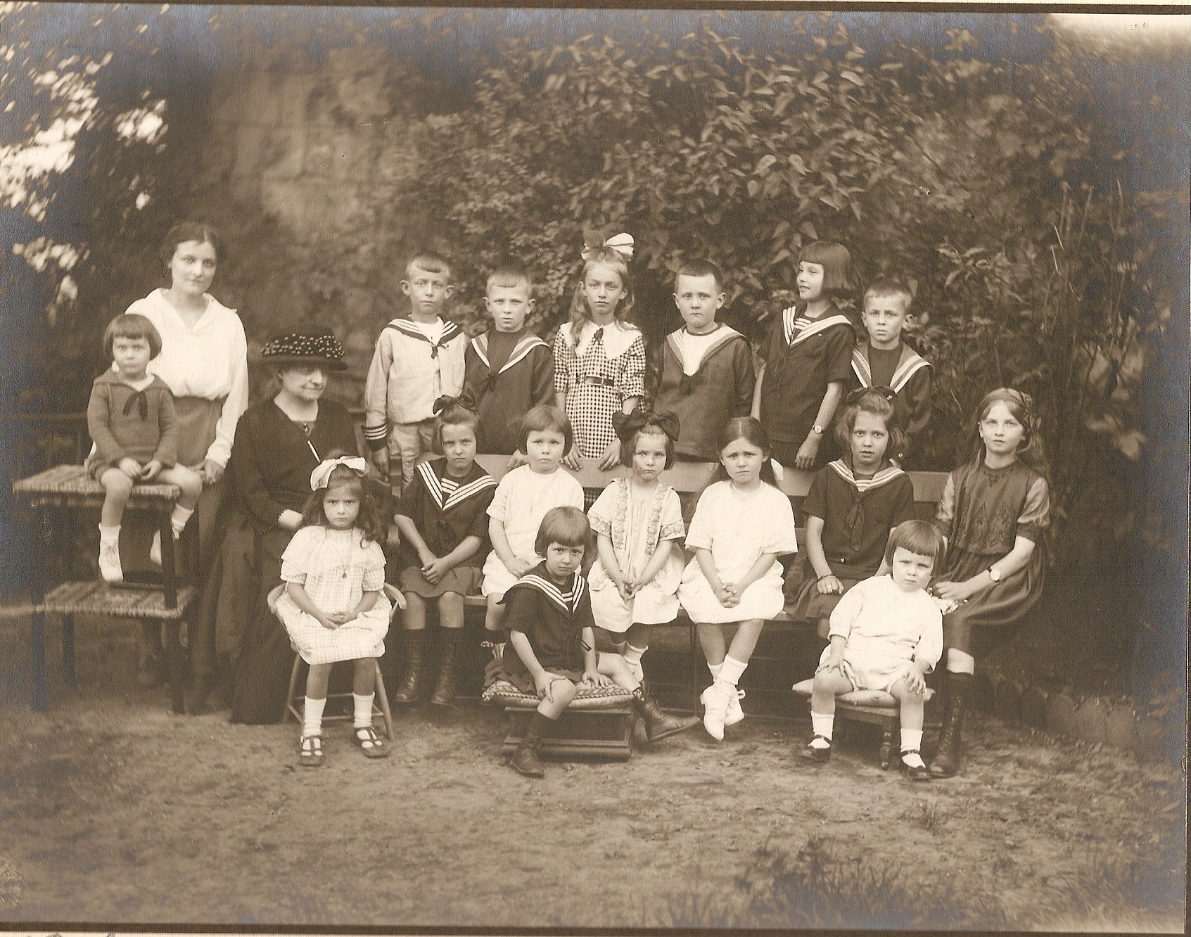 Renée, Pierre Limasset (André & Jeanne) né le 20 mars 1911, François Fandre (Charles & Geneviève) né le 12 février 1913, Simone Limasset (André & Jeanne), née le 21 mars 1912, Jacques Klein (ARthur & Marguerite), Madeleine Limasset (Joseph & Marcelle) née le 26 décembre 1910, Hubert Fandre (Charles & Geneviève) né le 16 août 1911, à gauche devant Renée, Henri Alliot (Maurice & Suzanne) né le 21 mai 1918, Grand-mère Angèle Limasset, Françoise Limasset (Joseph & Marcelle) née le 9 septembre 1914, Marie-Louise Fandre (Charles & Geneviève) née le 3 août 1916, Anne-marie Alliot (Maurice et Suzanne) née le 21 août 1916, Thérèse Klein (Arthur & Marguerite), née le 12 juin 1914, Andrée Limasset (Joseph & Marcelle) née le 27 octobre 1912, Guite Fandre (Charles & Geneviève) née le 20 septembre 1909, et au premier rang, Elisabeth Limasset (André & Jeanne) née le 17 février 1917, Denise Limasset (Joseph & Marcelle) née le 15 février 1919, et enfin Michel Fandre (Charles & Geneviève) né le 16 juillet 1918.