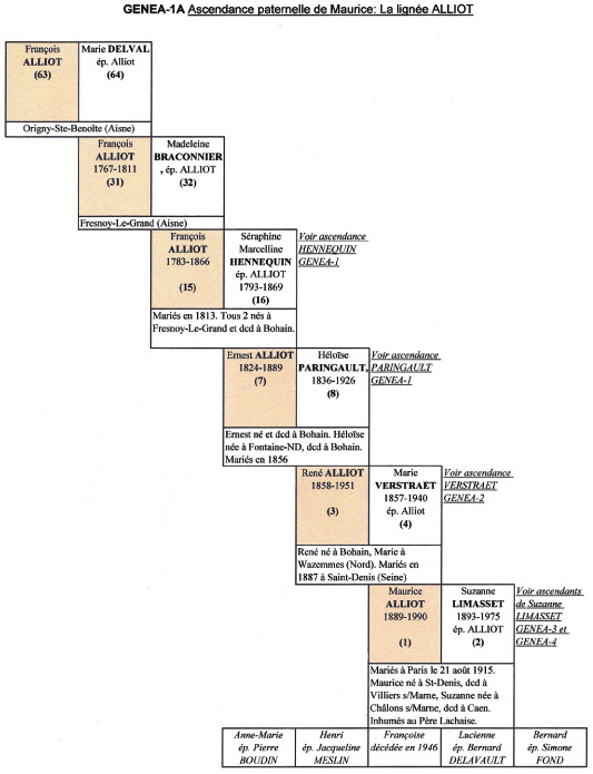 Elle se rapporte aux racines paternelles de Maurice ALLIOT et commence, pour ce que nous en connaissons, par 3 François ALLIOT :