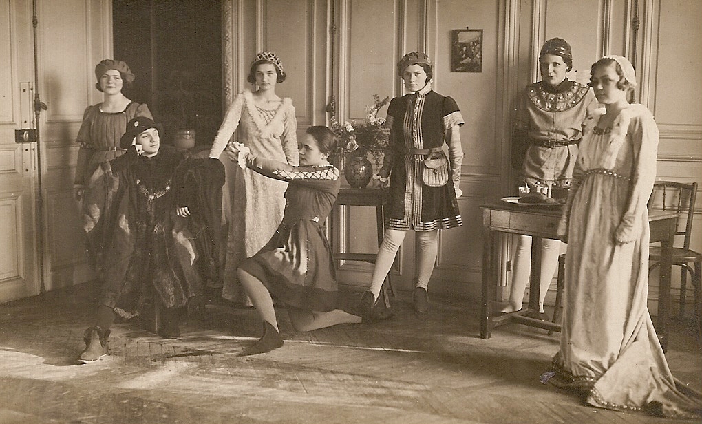 Pour Annie, reste le problème de l'école. On sait que son expérience dans la première école de Brunoy n'a l'a pas convaincue. Henri, plus tard, sera inscrit à Paris, à Massillon, mais pour l'heure, on s'arrange : "Henri et moi, n'allant pas à l'école, avons pris des leçons chez un instituteur à la retraite. Arrivée au niveau de la sixième, j'ai été inscrite dans une succursale du Collège d'Hulst à Brunoy. Il y avait peu d'élèves et pas de classe de 6ème. J'ai été mise en 5ème, mais le niveau était si faible que nous avons du redoubler la 5ème. Il m'a fallu attendre la seconde pour avoir de bons professeurs qui venaient du collège d'Hulst de Paris !". Le collège d'Hulst de Brunoy est une des succursales de celui de Paris, installé dans une des belles propriétés construites à Brunoy au cours et à la fin du second empire par des industriels, artistes et bourgeois fortunés.Joli cadre, mais où seules les dernières années d'étude lui ont laissé de bons souvenirs (plus bas, série de photos de spectacles de théâtre, où maman figure dans différents rôles et costumes.