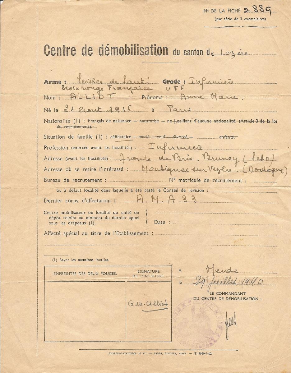 - Juillet 1940 : Mende. Maman est démobilisée.