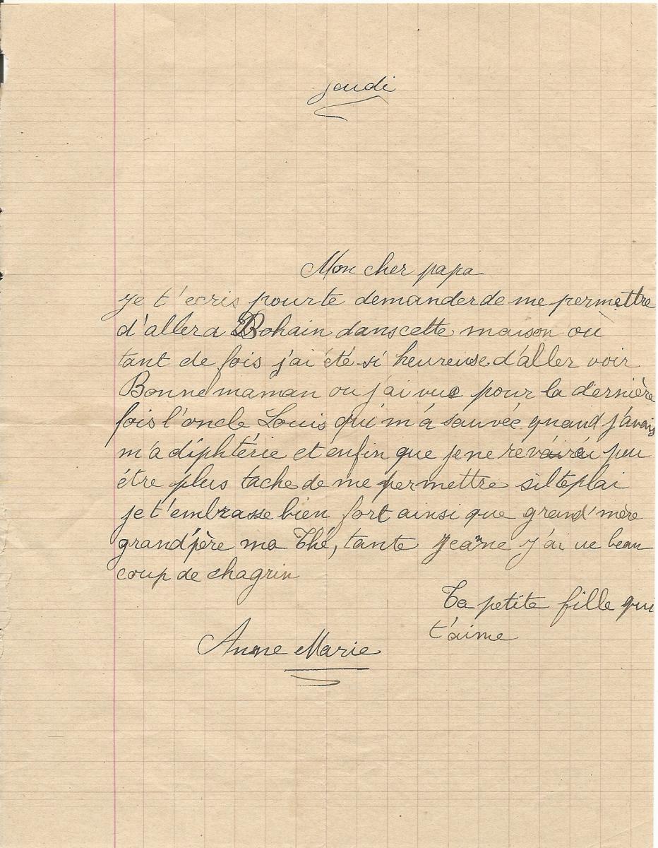Lettre d'Annie à son papa pour aller à Bohain (Agrandir)