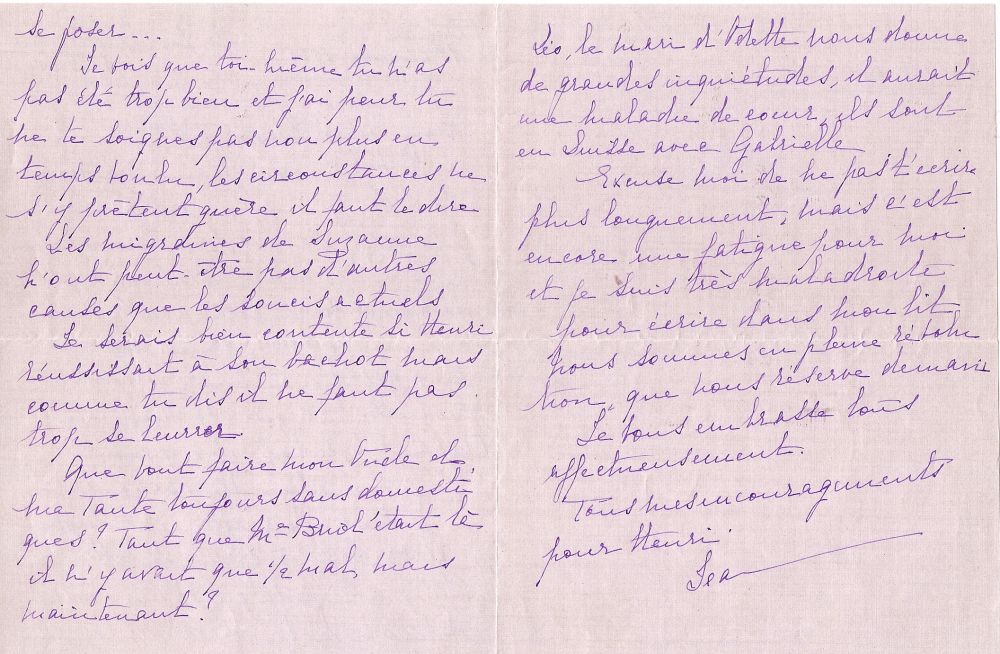 Quelques mois avant, le 10 juin 1936: Jeanne est malade, hospitalisée pour quelques temps. Le climat social est agité. Elle écrit à Maurice, lui parle de son propre état de santé, et poursuit: