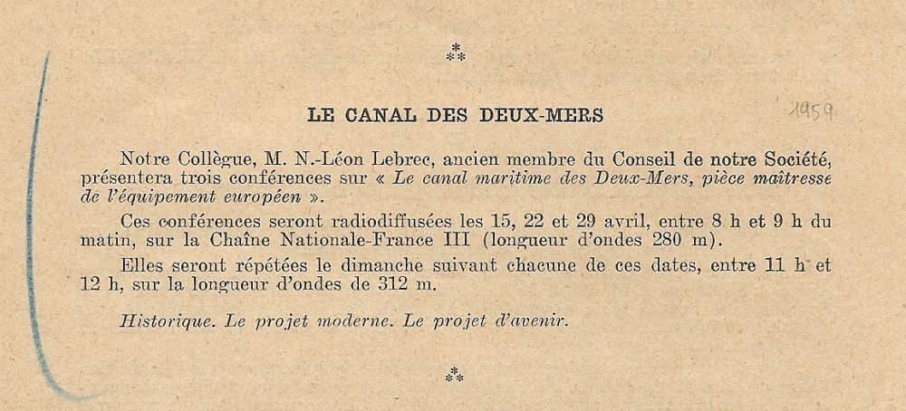 Bien des années plus tard, le projet de canal des Deux-Mers fait encore des adeptes, et la presse qui relance le dossier n'a pas oublié le rôle de Louis VERTRAET dans son élaboration, ni sa fin tragique: Les deux articles qui suivent argumentent l'un comme l'autre pour que l'on entreprenne enfin ce grand chantier! Le Petit Parisien, dans son édition du 23 avril 1933, et, en juin 1936, un article de journal (non identifié) signé Robert Boucard, pointent et dénoncent les pressions qui ont fait depuis tant d'années capoter ce projet. Tous deux insistent sur le rôle de Louis VERSTRAET, Robert Boucart allant même jusqu'à conclure: "Je demande que la statue de Louis Verstraët, le pionnier, se dresse _symbole du courage malheureux_ sur les bords de cette voie triomphale"! En 1958, Maurice, qui reçoit régulièrement des journeaux et bulletins d'associations d'ingénieurs ou d'anciens élèves de l'Ecole Centrale, signale d'un trait bleu les conférences prévues et radiodiffusées sur la Chaîne Nationale-France III sur le "Canal des Deux-Mers":