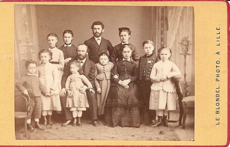 La photo ci-dessous est peut-être celle d'une réunion de famille: S’agit-il de Louis VERSTRAET et de sa femme Sophie, de Thérèse et de son mari Jean-Baptiste BOUQUILLON , entourés des tantes d’Houplines et des enfants des deux couples? Pas sûr.