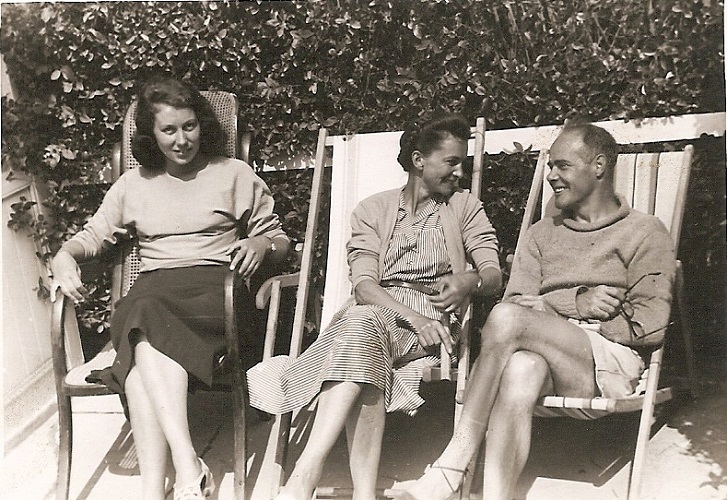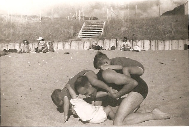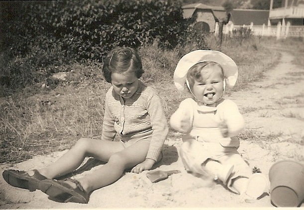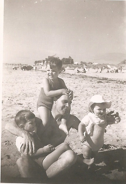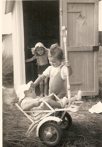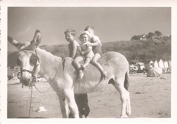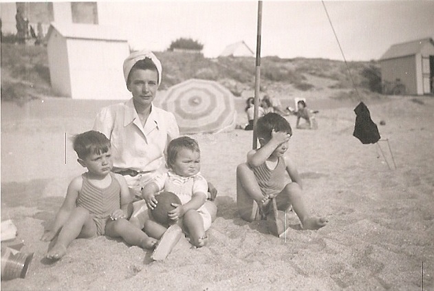 Ci-dessous, juin 1950 avec Francis (debout) et Patrice Tranchant à Saint-Jean-le-Thomas (cabine de plage à Carolles),