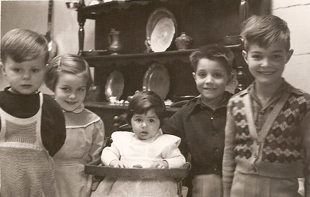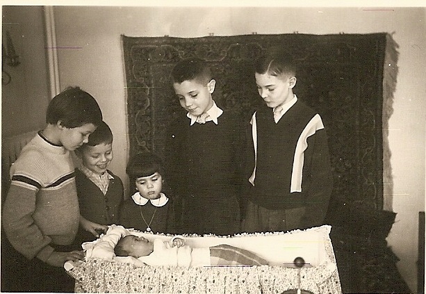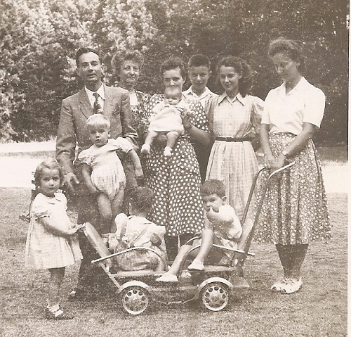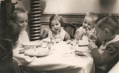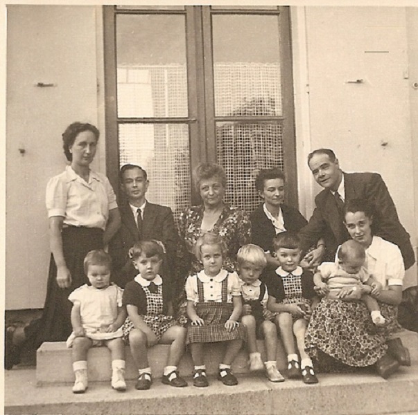 Les plus jeunes sont sur les genoux des grands-parents, Jean-René avec grand-mère, Michel avec grand-père.
