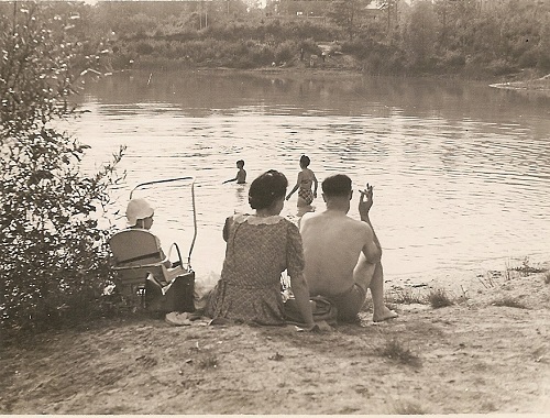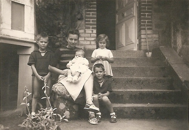 Dès l'été 1956 on y reçoit dans la journée les nouvelles connaissances caennaises, familles des confrères de papa au "SMIBTP", ci-dessous les enfants Coupeaux.