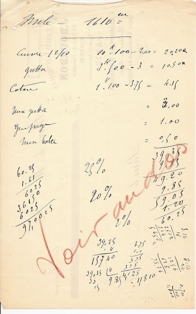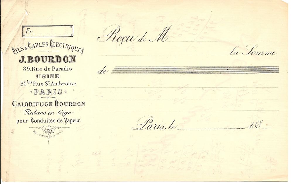 Sont-ce d'anciens reçus de la fabrique rachetée par René qui lui servirent par la suite de brouillons ensuite pour faire ses propres comptes? Toujours est-il qu'il portent l'adresse du 25 rue Saint-Ambroise et ne connaissent pas le nouveau siècle.