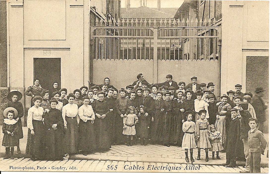"On y isolait, par coton ou soie, des fils de cuivre pour la téléphonie, la télégraphie et les appareils de mesure. Un peu avant 1900 eût lieu une expérience célèbre: On installa à la gare aux marchandises de Paris Nord une dynamo produisant du courant électrique "continu" et on mit un moteur électrique à la gare de Creil, un câble reliant les deux.... et le moteur tourna...! Le transfert de la force motrice par l'électricité se développa alors rapidement, surtout lorsque l'on sut utiliser le courant alternatif qui supprimait considérablement les pertes par chaleur (effet Joule) du courant continu. Alors l'usine de la rue saint-Ambroise se développa rapidement. René Alliot créa donc une deuxième usine dans son pays natal, à BOHAIN (Aisne) (.....), et utilisa les ateliers que son père avait créés avant la guerre de 1870 (...) (il) en augmenta considérablement la surface par l'achat de jardins voisins et la construction de nouveaux ateliers. Dans ces jardins, il y avait des maisons qu'il laissa aux occupants leur vie durant. Il fallait dévider et mettre en bobines (la soie ou le coton). René Alliot essaya de faire le travail dans l'usine de Paris: Ce fut un désastre, tant il y avait de déchets. Mais, à Bohain, cela se passa très bien. Les femmes avaient les bouts des doigts très lisses (la fonction crée l'organe) alors qu'il n'en était pas ainsi à Paris."