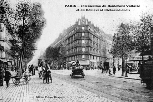 René, Marie et le petit Maurice s’installent donc très rapidement à Paris, Boulevard Voltaire (11e), au n°60: La porte cochère qui en marque l'entrée est la première qui s'ouvre sur le boulevard à gauche de l'immeuble qui fait l'angle avec le Boulevard Richard Lenoir. Ils ne sont pas loin de la rue Saint Ambroise où René s'est lancé dès le mois de mai 1889 dans la fabrication de fils et câbles électriques. Maurice est d’ailleurs baptisé dans la future paroisse de la famille, Saint Ambroise. Ils sont proches aussi du domicile qui sera très longtemps celui des Rol, Juliette et Eliacin, au 22 du Bd Ricahard Lenoir (mais en 1889, ceux sont à Laon, où Eliacin exerce encore son métier de pharmacien).