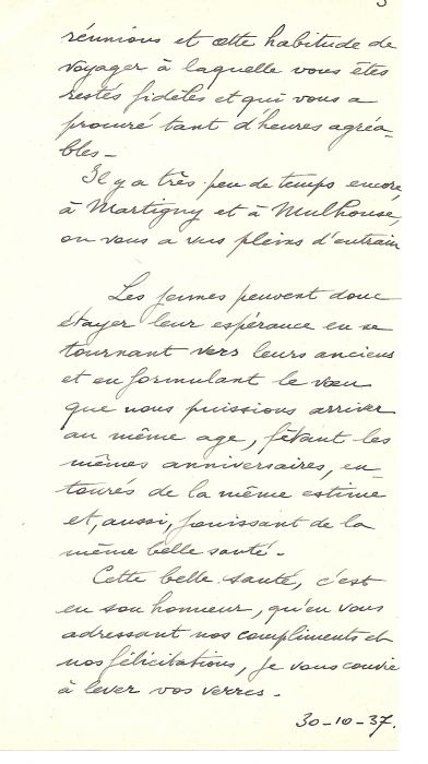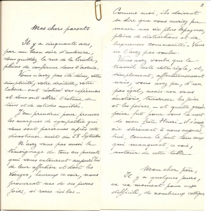 "Il y a cinquante ans, par un beau soir d'automne, vous quittiez la rue de la Briche, pleins de confiance dans l'avenir....."